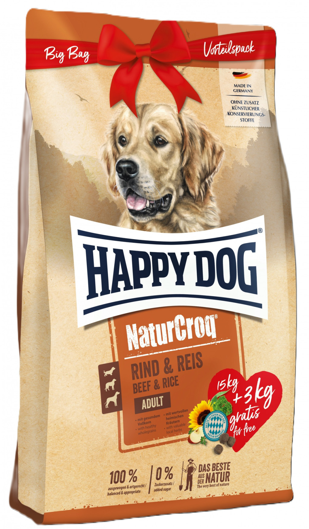 Happy Dog Natur-Croq Rind & Reis 15kg+3kg